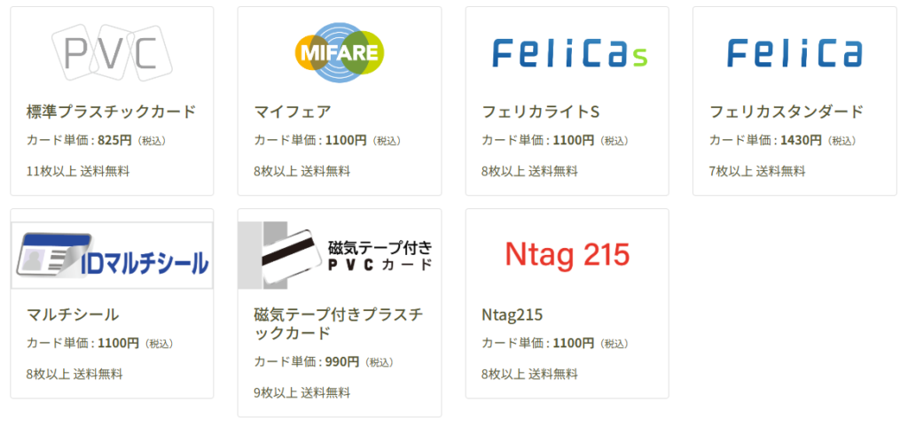 IDカードセルフでは、一般的なプラスチックカードに加え、下記のカードで作成が可能です。